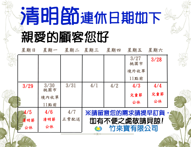 2026年清明兒童節連假公告